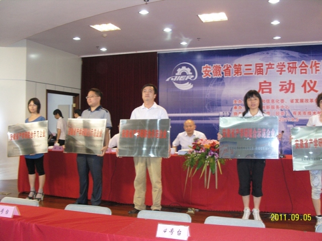 9月5日公司作為安徽省產學研聯合示范企業應邀出席了在合肥舉行的第三屆產學研合作網上對接周活動,并參加了授牌和簽約儀式。