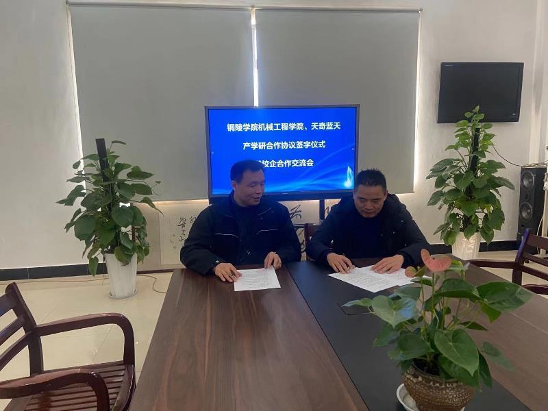 會后,天奇藍天公司章總和銅陵學院機械工程學院王院長簽署了產學研合作協議, 本次成功簽約標志著我公司與銅陵學院機械工程學院進入深度合作的階段,未來將在產、學、研等各方面共同創新發展。
