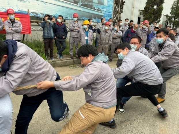 為豐富全體職工的精神文化生活,增強(qiáng)集團(tuán)公司凝聚力,公司于 2022年4月30日舉辦慶“五一〞拔河比賽。每支代表隊都顯示出最強(qiáng)的比賽陣容,齊心協(xié)力,勇爭第一。 當(dāng)比賽的哨聲響起,隊員們口中一起高呼著“一二!一二”,雙手緊握長繩,憋足了勁拼命往后拉,公司領(lǐng)導(dǎo)也在隊伍旁邊助陣加油,未參賽的員工自發(fā)組成啦啦隊為比賽隊員吶喊加油,號子聲、吶喊聲,此起彼伏,飄蕩在上空。